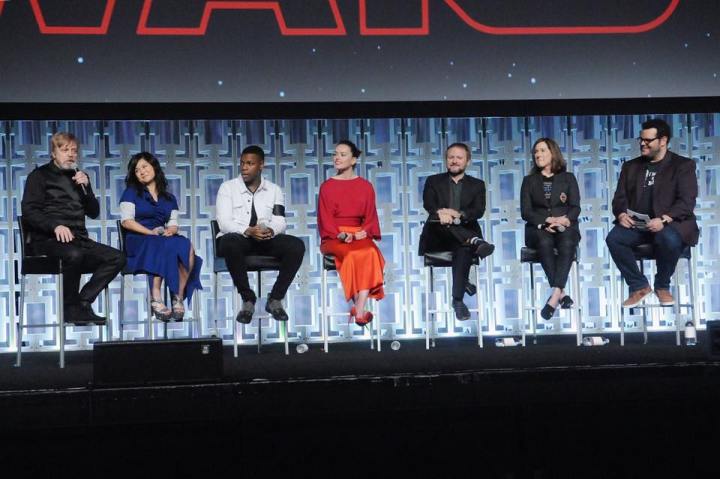 Liam Neeson y Samuel L. Jackson saludaron a los fans a través de un par de videos especiales, posteriormente aparecieron en el escenario IanMcDirmind y los primeros en estar fueron Billy Dee Williams, Anthony Daniels y Peter Mayhew. Tras escuchar a Lando Calrissian, C-3PO y Chewbacca, los siguientes en aparecer fueron Mark Hamill y Harrison Ford, ambos siendo parte de ese emotivo momento en el que Luke Skywalker y Han Solo por fin se reencuentran.