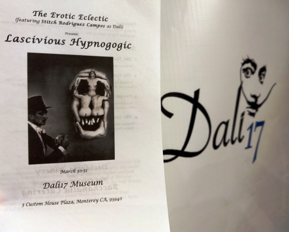 MONTEREY, CA – ¿Cómo sería pasar una tarde con el pintor surrealista español Salvador Dalí? ¿De que hablarían? Una respuesta la tuvo el también pintor Stitch Rodriguez Campos cuando en conjunto con The Erotic Eclectic, encabezado por la artista Janice Rocke , presentaron “Dali Gala XXX – Lascivious Hypnogogic” en el Dali17 Museum de Monterey este pasado viernes y sábado.