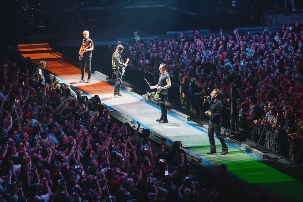 A lo largo de la noche en su pantalla LED masiva U2 mostró imágenes actuales de la dura realidad que se vive a nivel mundial, pero especialmente en Norteamérica, como las marchas de los supremacistas de la raza blanca con sus antorchas tiki durante la interpretación de la canción “Staring at the Sun”, pero U2 prende la llama de la esperanza al empezar a cantar el himno a la libertad de “Pride (In the Name of Love)” con brillantes imágenes del reverendo Martin Luther King Jr.. En esta ocasión el tour de U2 incorporó una novedad importante con la aplicación virtual “U2 eXPERIENCE” con la cual el público pudieron unirse con Bono para una canción en conjunto.