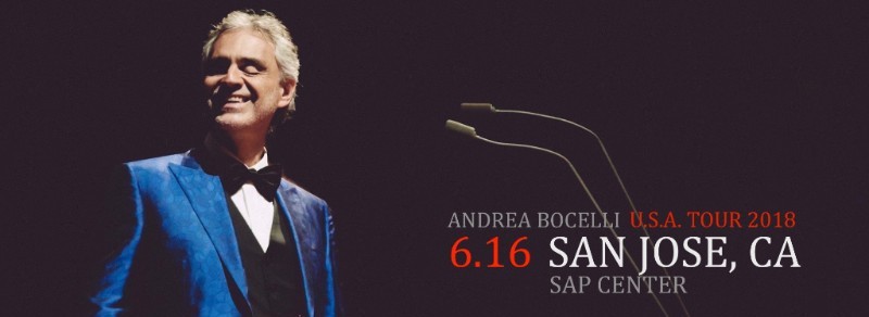Due to overwhelming demand, additional seats at previously sold out prices starting at $78 per ticket are now available for Andrea Bocelli’s June 16, 2018 performance at SAP Center in San Jose, CA. Get your tickets today before they are sold out for good.