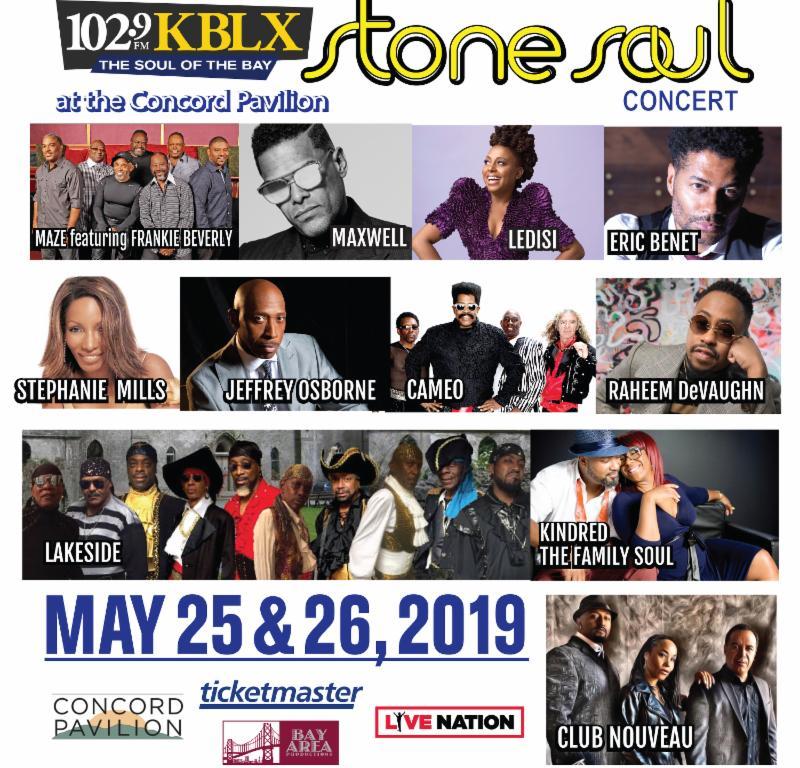 San Francisco, CA (March 22, 2019) – The lineup for the 22nd annual KBLX Stone Soul Concerts was announced today by Live Nation and Bay Area Productions. Returning to Concord Pavilion for two days on Saturday, May 25th and Sunday, May 26th, one of the West Coast’s largest R&B festivals features 11 legendary artists performing over two days with tickets on sale Friday, March 29th at Noon at Livenation.com and the Concord Pavilion box office.