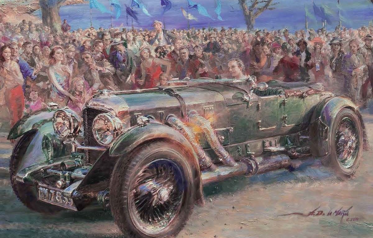 In its centennial year, Bentley takes center stage at the 2019 Pebble Beach Concours d’Elegance, as one glance at the concours poster makes clear. Painted by renowned modern impressionist Alfredo De la Maria of Argentina, it features a magnificent 1931 Bentley 8 Litre making its way past the crowd on Concours Sunday.
