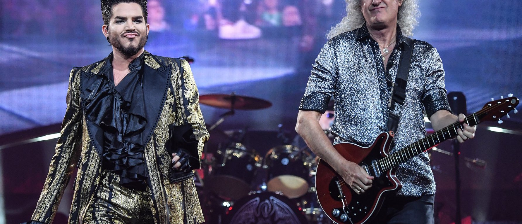 SAN JOSE, CA – La noche de ayer en el SAP Center de San Jose, Adam Lambert y el guitarrista Brian May se convirtieron en el centro de atención de la gira “The Rhapsody Tour”, y se lanzaron con fascinantes solos de guitarra, incluido un extracto cósmico de “Symphony No. 9” de Antonin Dvorak (comúnmente conocida como “New World Symphony”). Para el emotivo estallido interestelar que pudo haber sondeado una sesión de humo demasiado intensa en la parte trasera de una camioneta de los años 70, May estaba sobre una plataforma elevada entre orbes planetarias de neón que colgaban del techo, un asteroide salpicado en el tablero de video gigante debajo de él, cumpliendo con la promesa de la banda de una producción reforzada esta ronda.