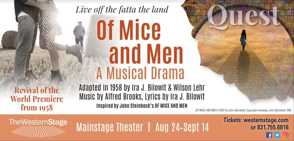 The Western Stage’s opening weekend of “Of Mice and Men” a Musical Drama will culminate in an exclusive one-night-only discussion panel with world famous Steinbeck experts, including Anthony Newfield (New York Actor/Director and personal friend of Bilowit, credited with bringing the archived materials to the National Steinbeck Center), Alice Spivak (Bilowit’s wife during the creation of the musical), Susan Shillinglaw (world-renowned Steinbeck scholar and San Jose State University professor), Jon Selover (TWS Artistic Director and Director of TWS’ “Of Mice and Men” reading and revival) and Waverly Kaffaga (executor of the Steinbeck Estate). The panel will discuss Steinbeck’s process in writing the novel, the creation of the musical, the musical’s evolution from 1958 Off-Broadway premier to 2018 reading and the 2019 revival production. This event is exclusively for ticket holders attending the Sunday matinee on Aug. 25 and will take place directly following the performance. This is in addition to the regularly scheduled ReActions for “Of Mice and Men” on Sept. 8, open to the general public. You may purchase your tickets to attend this special event by contacting the Box Office: (831)-755-6816 or westernstage@hartnell.edu.