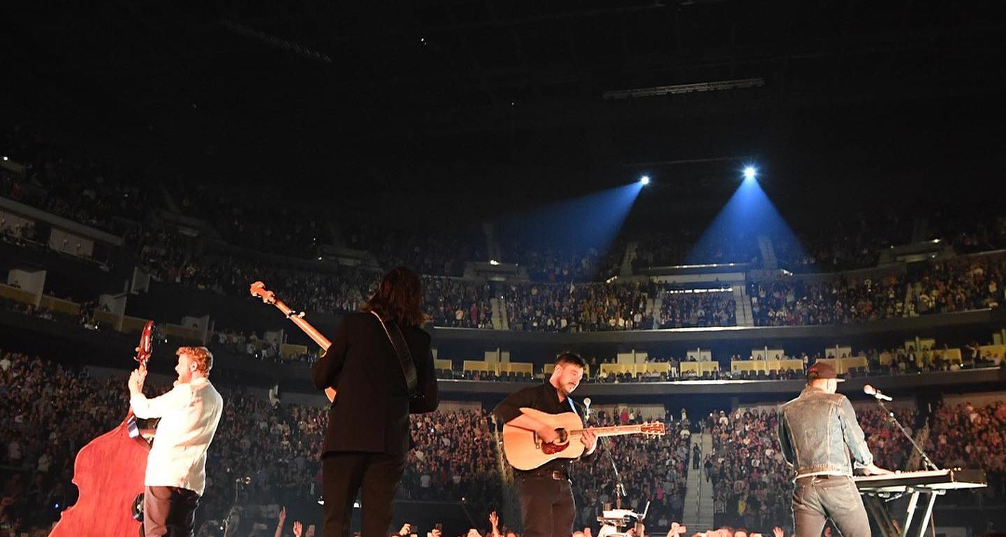 Después de la introducción explosiva, los cuatro se trasladaron a un escenario B conectado al escenario principal por una pasarela para “Little Lion Man” y “Babel”. Este espacio más pequeño era aproximadamente del tamaño de las primeras etapas que la banda tocó en los EE. UU. los augh tardíos. Mumford & Sons parecía rendir homenaje a esos años con arreglos ajustados y actuaciones que se basaban en las armonías de los miembros de la banda.