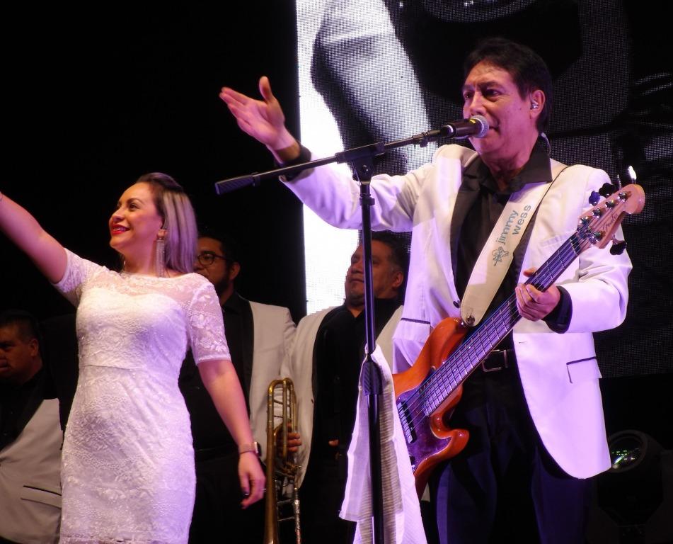 Animando al público para que bailara, los hermanos Mejía Avante ataviados con traje y las hermanas con elegantes vestidos rojos bailaron durante toda la velada, mientras las trompetas, percusiones, acordeón, guitarras, bajo y teclados retumbaban.