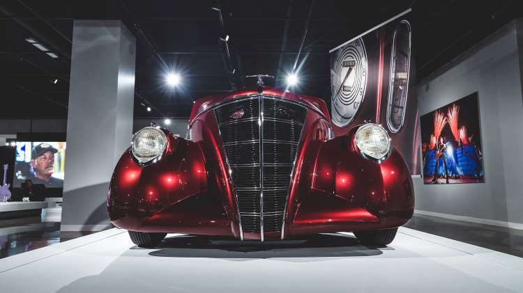 La colección de Hetfield, que fue donada gentilmente a Petersen el año pasada, consta de 10 autos personalizados, incluyendo el “Black Pearl” Jaguar de 1948 y el “Sacerdote Vudú” de Lincoln Zephyr de 1937. Los autos se están exhibiendo en la Galería de la Familia Bruce Meyer junto con artefactos y recuerdos de Metallica.