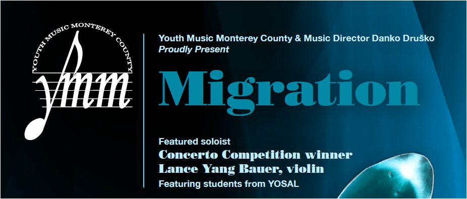 Youth Music Monterey County is proud to present Migration, an extraordinary concert of music that celebrates the transcendent beauty of Chinese, Russian, Mexican, German, and Italian composers. Under the leadership of YMMC’s Music Director Danko Druško, the Junior Youth and Honors Orchestras present brilliant orchestral works performed by our community’s most talented young musicians in Carmel’s Sunset Center Theater. Members of the Junior Youth & Honors Orchestras hail from over 25 schools across Monterey County.