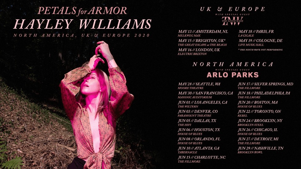 San Francisco, CA (March 5, 2020) – GRAMMY® Award-winning artist Hayley Williams has announced her eagerly awaited first solo tour. The “Petals For Armor Tour” officially gets underway on May 13th with a series of European dates. North American dates begin May 28th and include a stop at The Masonic in San Francisco on Saturday, May 30th. Arlo Parks will provide support on all US dates.