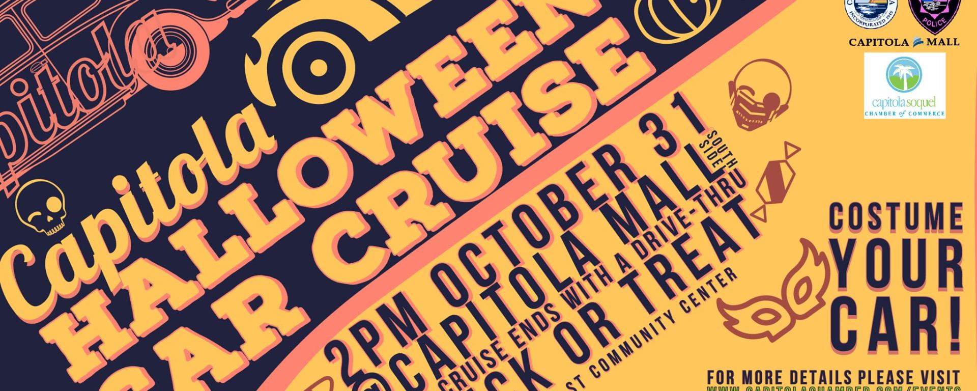 La programación del Paseo de Halloween comenzará a las 2 pm en el antiguo estacionamiento de Sears en el Capitola Mall. El crucero comenzará puntualmente a las 2:15 pm. Los voluntarios estarán en el lugar para guiar a los vehículos sobre dónde estacionar mientras esperan que comience el crucero.