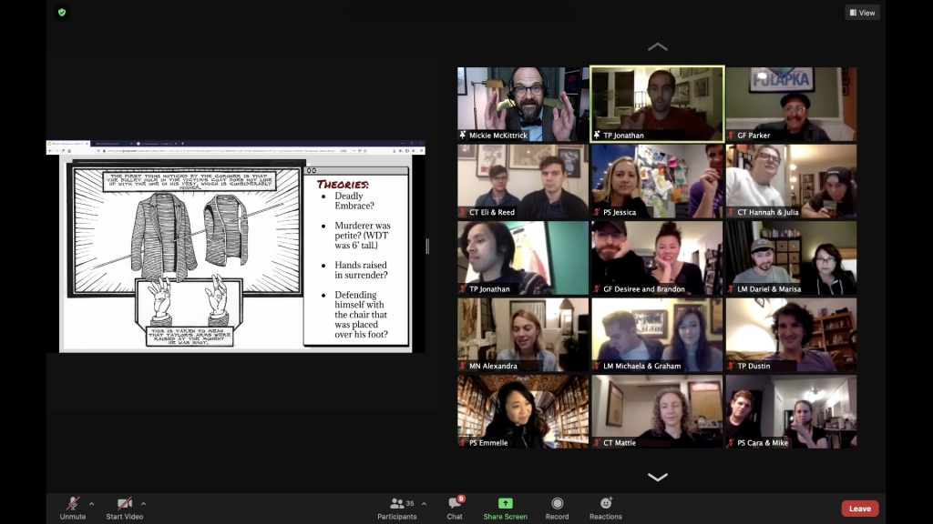 Escrita y dirigida por Chelsea Marcantel, crea una mezcla de teatro, intriga y desciframiento colaborativo de códigos a medida que cada participante es aceptado en la sesión de capacitación de detective ciudadano de Mickie McKittrick (Mike Ostroski) por medio de Zoom.