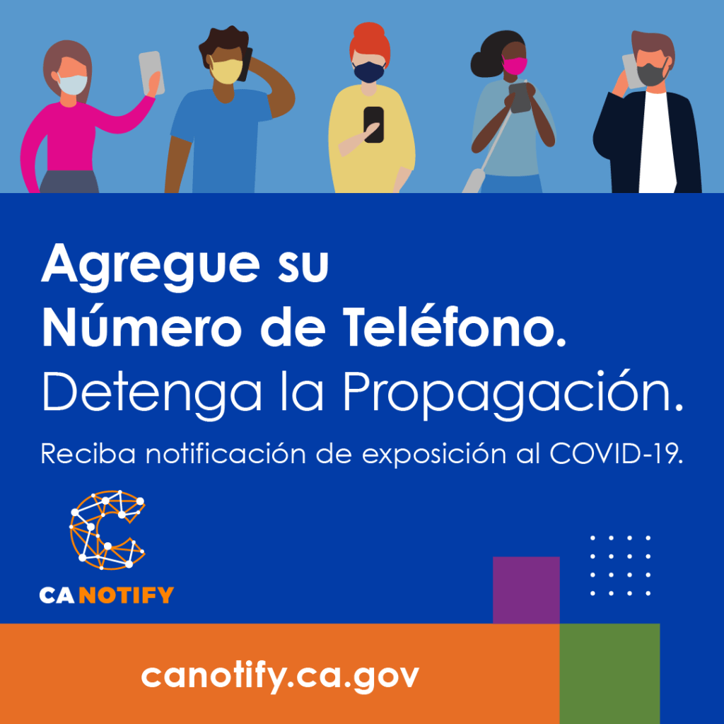 Los usuarios que hayan dado positivo por COVID-19 recibirán un mensaje de texto del Departamento de Salud Pública de California al 855-976-8462 con un código que pueden ingresar en CA Notify activando una alerta en los teléfonos de las personas que pueden haber estado expuestas en el los 14 días anteriores”.