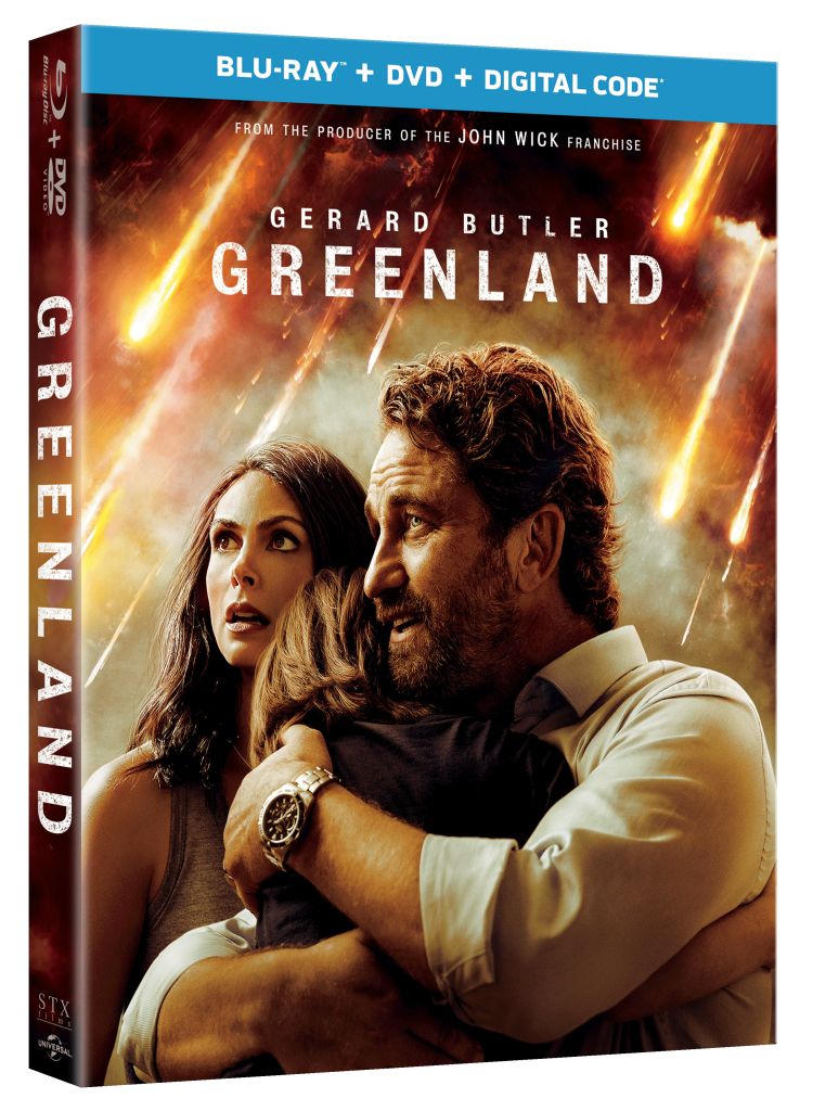 Universal City, California, January 12, 2021 – A father must fight to unite his family and survive against all odds in the face of a cataclysmic natural disaster in the intense action-packed thrill ride, Greenland, available to own for the first time on digital January 26, 2021 and on Blu-ray™, DVD and On Demand February 9, 2021 from STXfilms and Universal Pictures Home Entertainment. Gerard Butler (300, Has Fallen franchise) produces and leads in the pulse pounding Rotten Tomatoes Certified Fresh® film that also stars Morena Baccarin (Deadpool franchise, “Homeland”), Scott Glenn (The Hunt for Red October, The Bourne Ultimatum), Holt McCallany (“Mindhunter,” Fight Club), David Denman (Brightburn, “The Office”), Hope Davis (Captain America: Civil War, About Schmidt), and Roger Dale Floyd (“The Walking Dead: World Beyond,” Doctor Sleep) whose remarkable performances take audiences on a thrilling journey filled with spectacular special effects, non-stop adventure, and intense stunts from start to finish.
