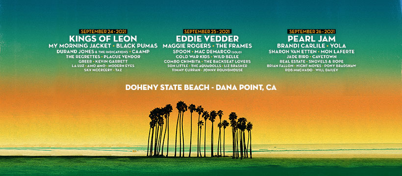 El evento de tres días para todas las edades está dirigido por Kings of Leon el viernes, el curador del festival Eddie Vedder el sábado y, por primera vez, la banda de Vedder, Pearl Jam, el domingo. Hay algunos cambios en la alineación desde que se anunció originalmente en marzo de 2020. Los Pretenders se retiraron el domingo, pero fueron reemplazados por la cantautora Brandi Carlile. Gang of Youths ya no está en el cartel del sábado, pero se agregaron Spoon y Cold War Kids y, aunque Broken Social Scene ya no es parte del festival, Black Pumas subirá al escenario el viernes.