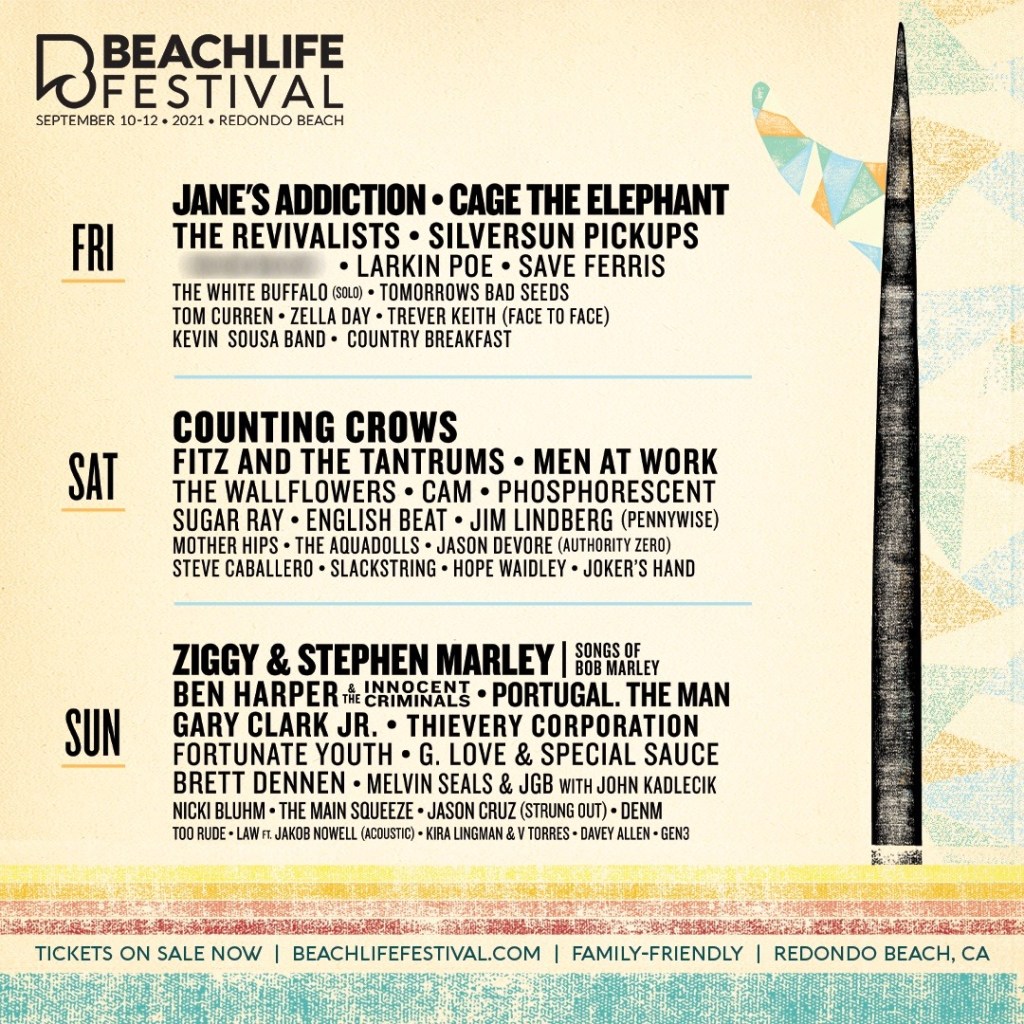 BeachLife Festival regresa a Redondo Beach con un evento de tres días encabezado por los nativos de Los Ángeles y la realeza del rock alternativo Jane’s Addiction, quien encabezará la alineación el viernes 10 de septiembre, junto con Cage the Elephant.