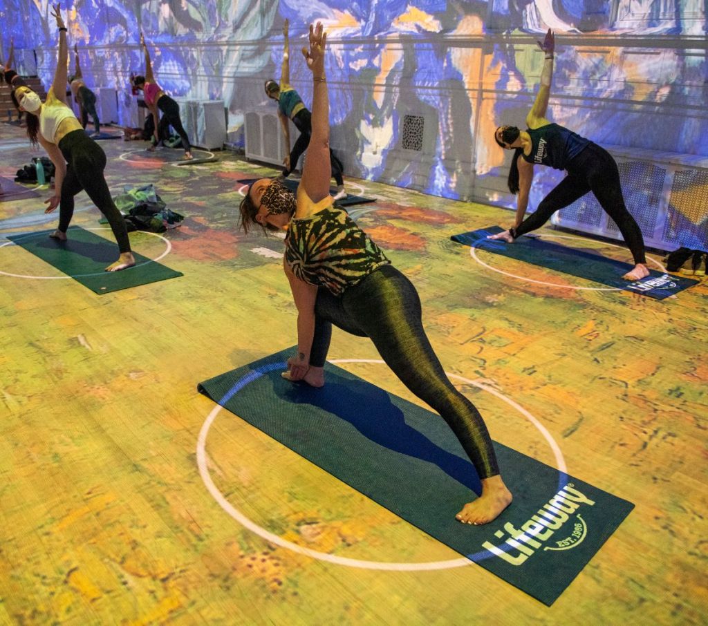 Gogh with Lifeway Kefir Immersive Yoga classes will be presented with strict health and safety practices in place. Capacity is limited to a maximum of 45 yoga participants. Additional safety precautions include touchless ticket-taking, temperature checks upon arrival, hand sanitizer stations, social distancing markers throughout the venue, and digitally projected social distancing circles on the gallery floors to ensure appropriate spacing. All guests must wear a face covering at all times during their visit to SVN West. Guests should arrive dressed for classes and bring their own yoga mats.