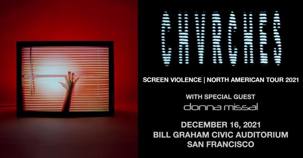 CHVRCHES will perform at the Bill Graham Civic Auditorium on December 16th, 2021 with special guest Donna Missal!