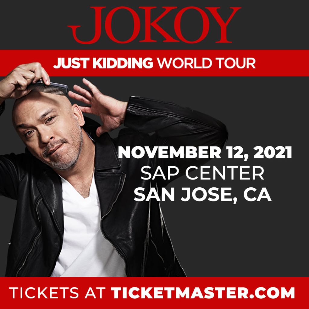 Entretenimiento/EntertainmentJO KOY is coming to SAP Center in San Jose on November 12, 2021 JO KOY is coming to SAP Center in San Jose on November 12, 2021 Tickets on sale this Friday June 11 at 10am. https://www.ticketmaster.com/event/1C005AB9990325EA Share this: Click to share on X (Opens in new window) X Click to share on Facebook (Opens in new window) Facebook Like Loading... Related
