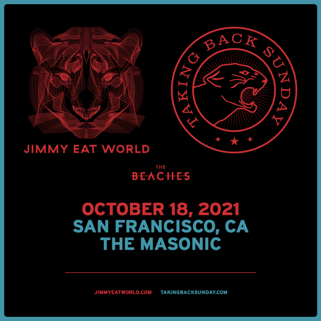 ALT 105.3 presents Jimmy Eat World & Taking Back Sunday with The Beaches at The Masonic in San Francisco on October 18, 2021
