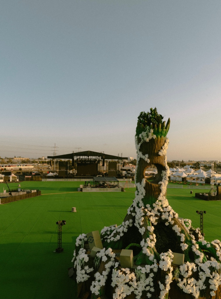 Había una caverna de cristal azul resplandeciente de mariposas relucientes en el extremo izquierdo del escenario, y había un gran letrero de “Segundo cielo” que presentaba la oportunidad de tomar una foto perfecta al final del festival. Nunca se sintió como si estuvieras de fiesta en un estacionamiento, en gran parte debido a los 250,000 pies cuadrados de césped artificial Nassal colocados en todo el terreno. El sitio se sintió cómodo, enriquecedor, verde y lo suficientemente seguro como para que la gente pudiera ver las plantas en el suelo y tomar fotografías.