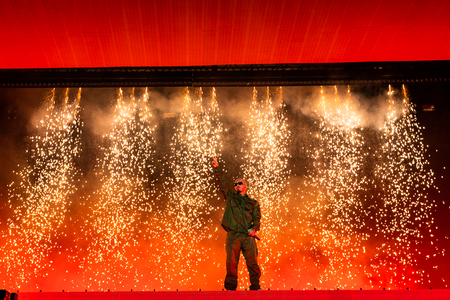 La cantidad de pirotecnia que lo acompañó mientras subía al escenario y continuaba durante la totalidad de “Mi Gente”, la primera canción: chorros de fuego, ráfagas de chispas desde abajo y lluvias de chispas desde arriba, chorros de humo que aparentemente provienen de múltiples direcciones. , versiones más pequeñas de los fuegos artificiales de colores como los que verías el 4 de julio disparando desde el escenario.