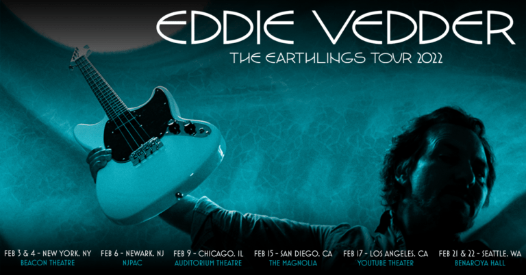 Eddie Vedder and bandmates the Earthlings will hit the road in a series of U.S. concert dates in February 2022. Produced by Live Nation, the shows kick off on February 3 in New York and wrap up on February 22 in Vedder’s hometown of Seattle. Special guest Glen Hansard will open the shows.