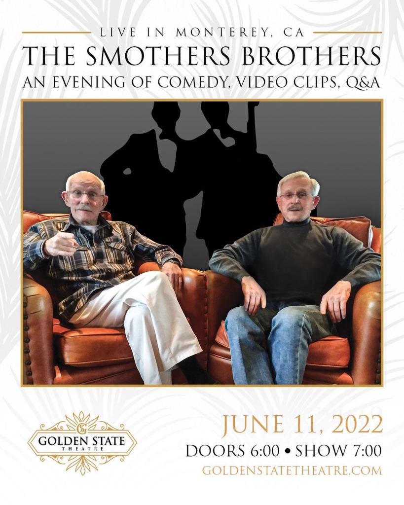 Entretenimiento/EntertainmentJoin America’s favorite brothers, The Smothers Brothers, for the laughter, music, and memories at the Golden State Theatre on Saturday, June 11th! THE SMOTHERS BROTHERS: An Evening of Comedy, Video Clips, Q&A! Public Onsale Begins: Friday, February 4, 2022 10:00 AM CLICK HERE TO PURCHASE TICKETS! Share this: Click to share on X (Opens in new window) X Click to share on Facebook (Opens in new window) Facebook Like Loading... Related