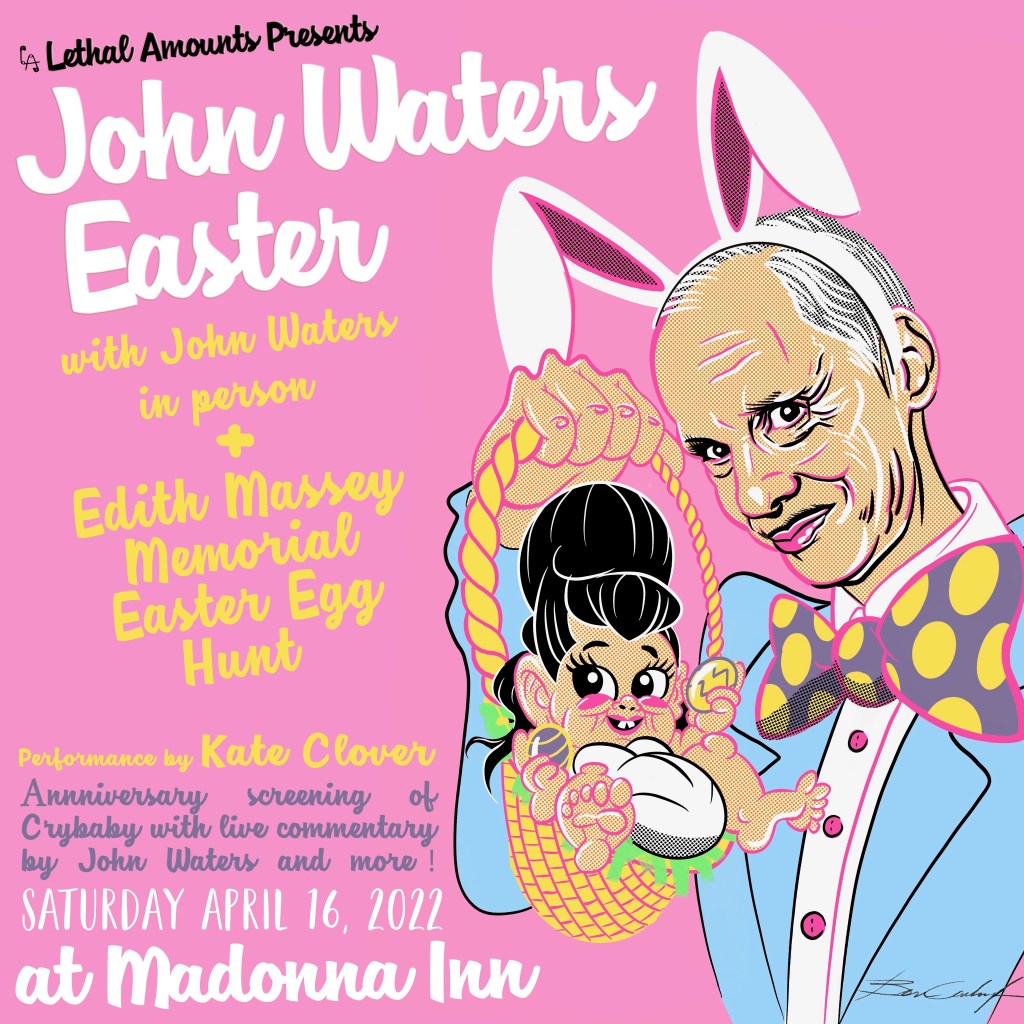 John Waters Easter at the historic and legendary Madonna Inn. Celebrating the 30th Anniversary screening of the classic film “Cry Baby” with live commentary by John Waters himself. Followed by Q&A with surprise special guests.