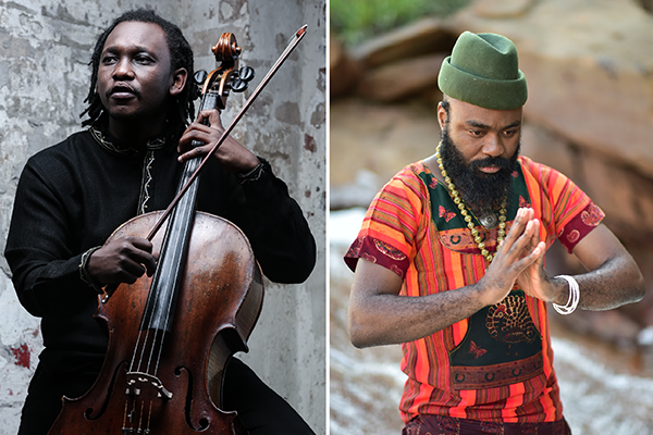 Abel Selaocoe (left) will perform a solo cello recital in Bing Concert Hall this month and jazz artist Nduduzo Makhathini (right) performs in Bing Studio in April.