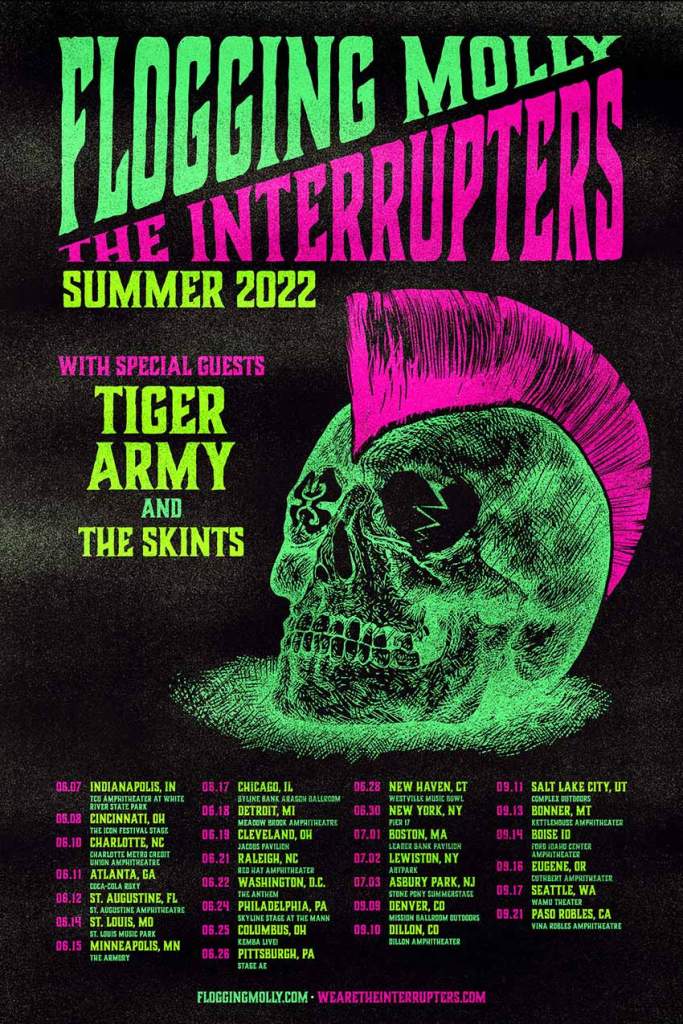 La banda de rock celta Flogging Molly y la banda de ska punk The Interrupters han anunciado una gira para el verano de 2022 encabezada conjuntamente por ambas bandas. Junto a los dos cabezas de cartel estarán la banda de psicobilly Tiger Army y la banda británica de reggae punk The Skints. Las entradas para la gira ya están disponibles.