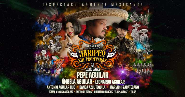 Backed by his band El Mariachi “El Zacatecano,” fans will fall in love with Pepe Aguilar’s commanding performances alongside his brother Antonio Aguilar, Hijo; his talented daughter, Grammy and Latin Grammy nominee Ángela; and his son Leonardo, two-time Latin Grammy nominee. A massive production involving more than 150 people, including 40 stage musicians alone, the tour provides an unforgettable, once-in-a-lifetime experience for everyone in attendance, combining captivating music sets with heart-stopping bull fighting displays and rodeo events, such as horse riding and equestrian acrobatic performances.