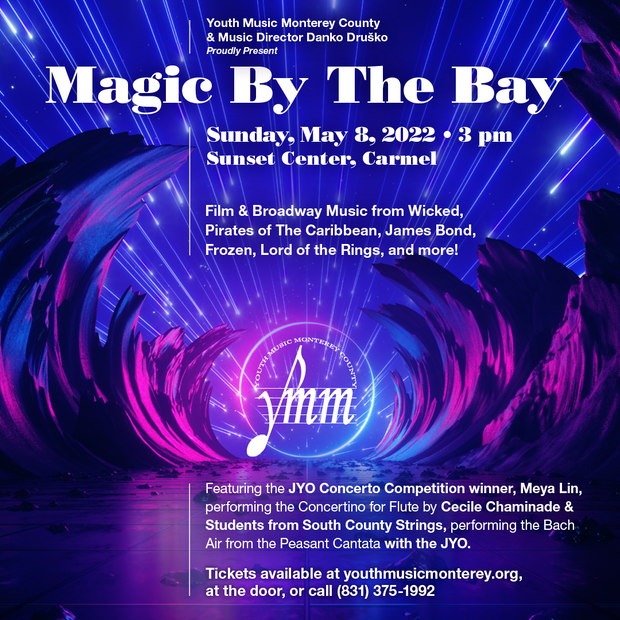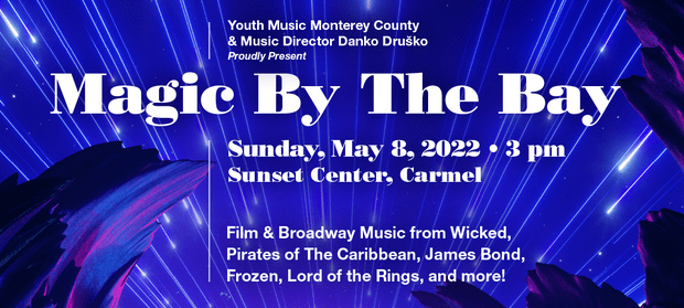 Youth Music Monterey County and conductor Danko Drusko present MAGIC BY THE BAY at the Sunset Center in Carmel on Sunday, May 8, 2022 with music from Wicked, Pirates of The Caribbean, James Bond, Frozen, Lord of the Rings, and more!