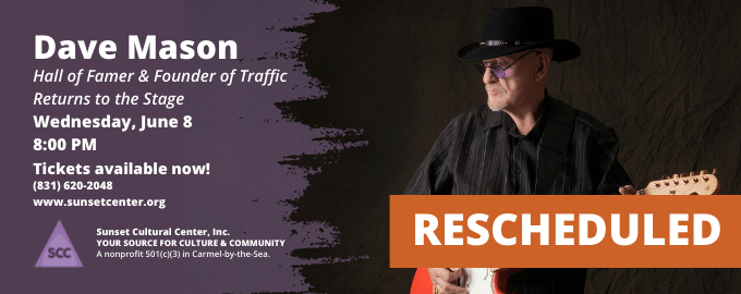 Dave Mason’s concert at the Sunset Center in Carmel has been rescheduled to Wednesday, June 8, 2022.