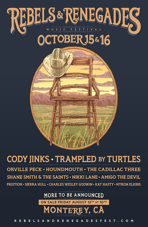 | Rebels and Renegades Music Festival, October 15 & 16 at the historic Monterey County Fairgrounds featuring performances by Cody Jinks, Trampled By Turtles, Orville Peck, Houndmouth, The Cadillac Three, Shane Smith and the Saints, Nikki Lane, Sierra Hull and more! GET PRE-SALE TICKETS NOW WITH ACCESS CODE REBELS |