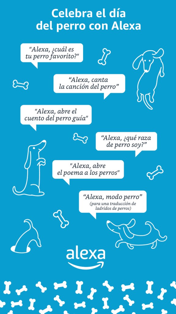 Dicen que el perro es el mejor amigo del hombre y ¿cómo no?, si antes y durante la pandemia, se volvieron la mejor compañía, principalmente en casa. ¿Sabías que Alexa es muy fan de los perritos? Por ello preparó algunas sorpresas para conmemorar el 26 de agosto, el día nacional del perro. No olvides sacar a pasear a tu peludito, pídele a Alexa que te lo recuerde: “Alexa, recuérdame sacar a pasear a ________ (inserta nombre de tu perrito o perrita aquí) a las 4 de la tarde”.
