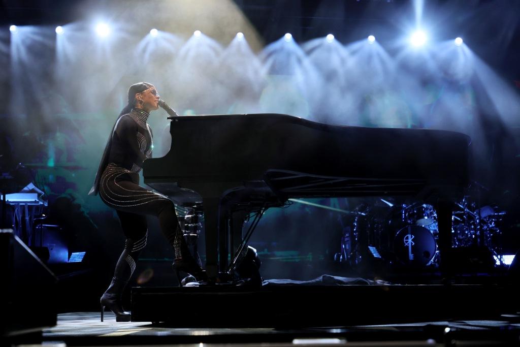 Durante su concierto, Alicia Keys cantó sus éxitos apasionados “No One”, “Falling”, “Empire State of Mind”, “Girl On Fire” y “If I Ain’t Got You” ante una multitud que cantaba (y a menudo gritaba). Se sentaba regularmente al piano, mostrando su destreza con el instrumento, combinando su interpretación con su talentosa banda de acompañamiento para crear texturas conmovedoras con tintes de jazz.