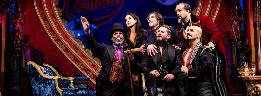 El “diamante resplandeciente” del club, Satine (Courtney Reed) hace una impresionante entrada a “Diamonds are Forever” de Shirley Bassey antes de entrar en la melodía familiar de la película “Diamonds are a Girl’s Best”. Amigo” es una opción interesante; un momento sombrío -casi un monólogo interior que la cantante está teniendo consigo misma, como si tratara de hacer las paces con lo que ha tenido que hacer para pasar por esta vida. Ella ya se comprometió con el Duque de Monroth (interpretado por David Harris), quien, a pesar de que nos lo presentó musicalmente con el éxito de Rolling Stone “Sympathy for the Devil”, en realidad es menos el villano que hace girar el bigote que era en la película gracias a la actuación matizada de Harris aquí. Es posesivo, claro, y aunque ha asesinado a personas que se le han cruzado antes, quiere reclamar el “diamante brillante” del Moulin Rouge como suyo y rescatarla de la vida de pobreza extrema.