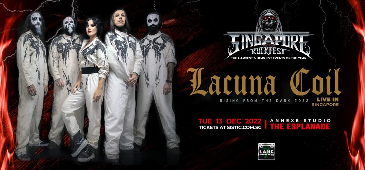 The Singapore Rockfest, the hardest and heaviest concert series of the year, returns with Italian heavy rockers LACUNA COIL bringing their long-awaited show to Singapore on Dec 13, 2022 at the Annexe Studio at The Esplanade. The metal veterans, who is also set to celebrate the 20th anniversary of their fan-favorite third album, Comalies, started hitting the road for their US tour, and will also perform in Milan and Australia before their much-anticipated Singapore concert. Tickets to Lacuna Coil’s “Rising in the Dark 2022” go on sale on October 7th, 9am via Sistic.com.sg.