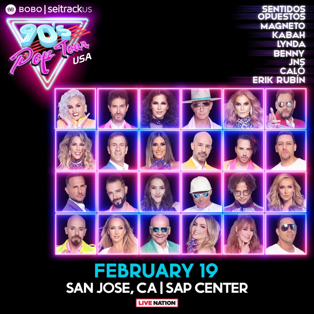 The 90’s Pop Tour heads to SAP Center on February 19th, 2023 featuring all the greatest hits from Sentidos Opuestos, Magneto, Kabah, Benny Ibarra & More!