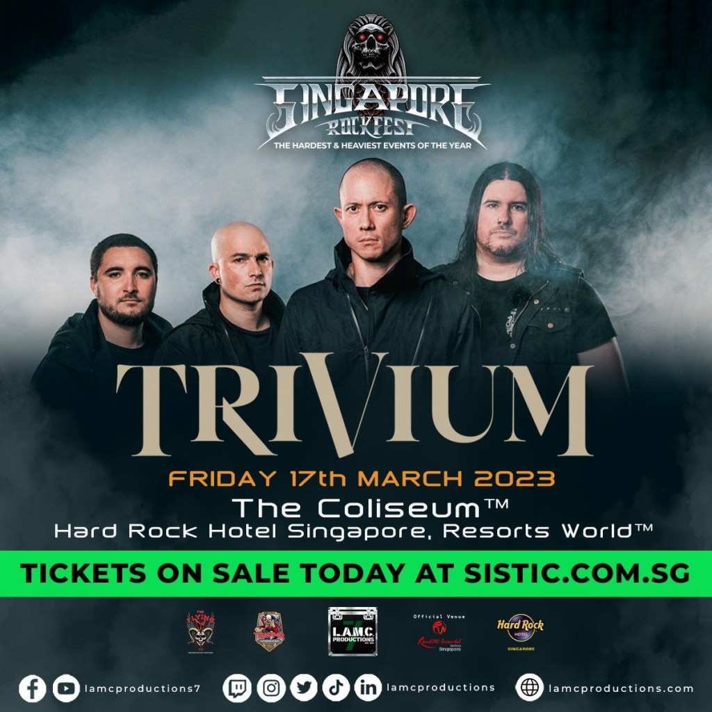 Trivium Live at The Coliseum™, Hard Rock Hotel Singapore, Resorts World™ Sentosa on 17th March 2023 as part of the Singapore ROCK FEST concert series. Tickets NOW ON SALE via sistic.com.sg/events/trivium0323.
