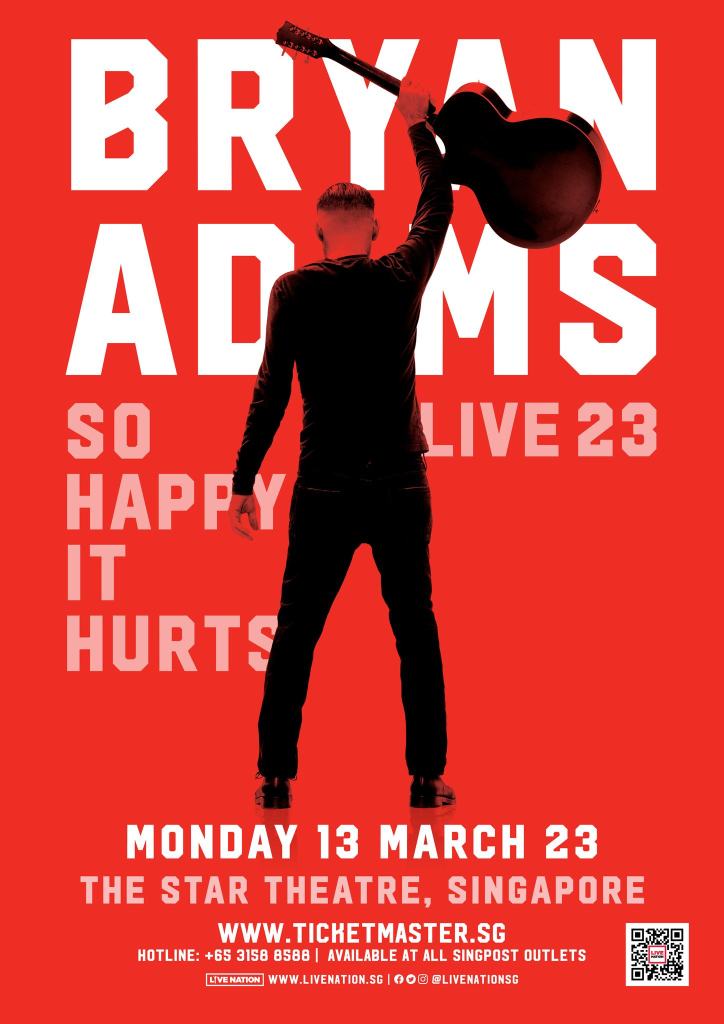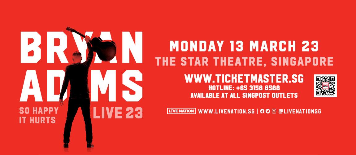 Live Nation is thrilled to announce that Canadian rock legend Bryan Adams is set to bring his So Happy It Hurts Tour to Asia! The tour will take place in Singapore at The Star Theatre on 13 March 2023 (Monday).