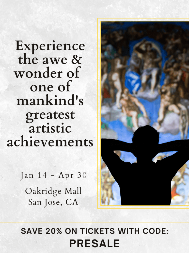 Michelangelo’s Sistine Chapel: The Exhibition is coming to Oakridge Mall in San Jose from January 14th to April 30th, 2023!