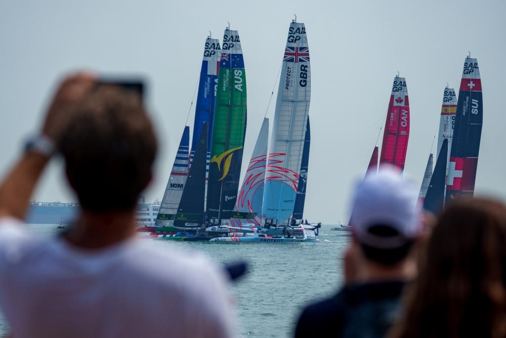 En condiciones de poco viento, los nueve F50 compitieron con el ala de 29 metros y cuatro atletas en lugar de los seis habituales a bordo, y solo compitieron en dos regatas de flota. Después de un día desafiante de carreras, Sir Ben Ainslie y el equipo Great Britain SailGP Team y el equipo canadiense de Phil Robertson ocupan el segundo lugar, cuatro puntos detrás de los australianos.