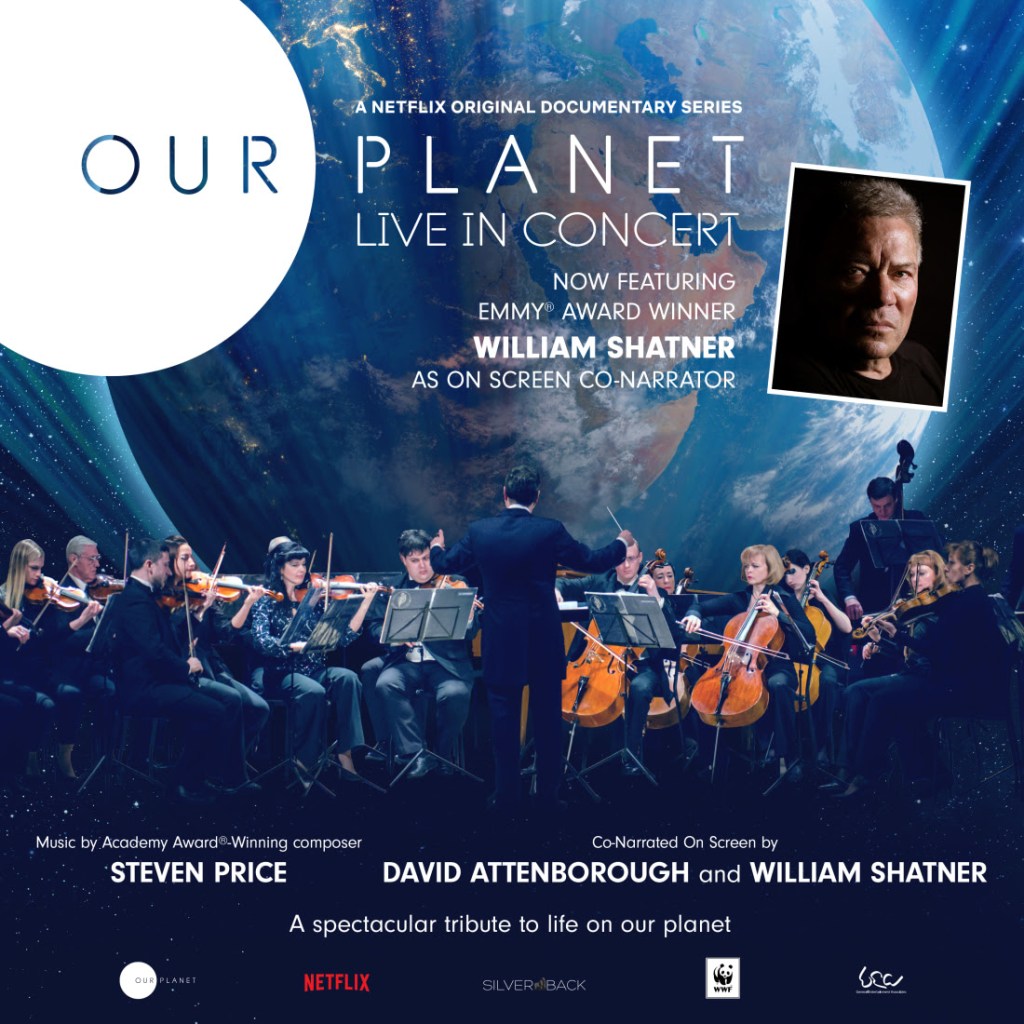 William Shatner, the Emmy® Award-winning actor who came to fame portraying Captain James T. Kirk on the original “Star Trek” television series, today announced he has signed on to provide special on screen co-narration for the all-new concert tour, “Our Planet Live in Concert,” based on the Netflix original documentary nature series.