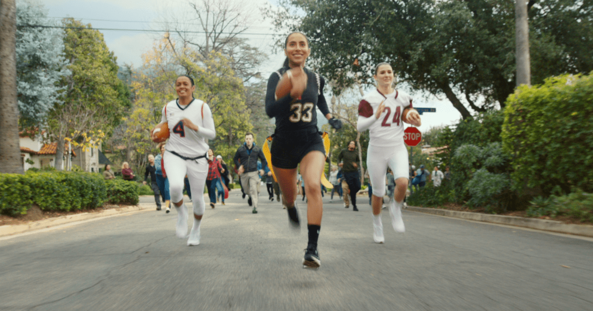Flores encabeza “Run With It”, el comercial de gran éxito del Super Bowl que presenta un juego épico de Flag football y rinde homenaje a las mujeres que impulsan el deporte
