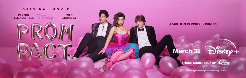 Today, Disney Channel and Disney+ revealed the trailer and key art for Disney Branded Television’s “Prom Pact,” a heartfelt romantic comedy set during the emotion and excitement of high school Prom season. The Disney Original Movie, which stars Peyton Elizabeth Lee (“Doogie Kamealoha, M.D.”), Milo Manheim (Disney’s “ZOMBIES” franchise) and newcomer Blake Draper, is set to debut Thursday, March 30 (8:00-9:45 p.m. EDT), on Disney Channel and Friday, March 31, on Disney+.