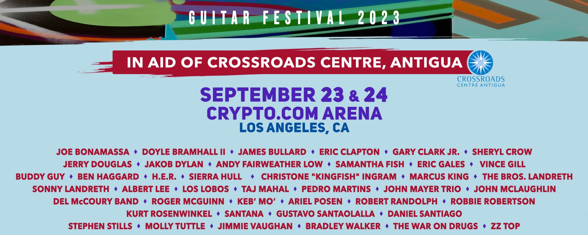 In addition to the concerts, Guitar Center, a co-sponsor since 2004 and a strong supporter of the Crossroads At Antigua Foundation, will once again host the Guitar Center Festival Village on-site adjacent to the arena on Xbox Plaza and Chick Hearn Court at L.A. LIVE. Some of the world’s best guitar and gear manufacturers, including Fender, Gibson, Martin, BOSS, D’Angelico, Ernie Ball, Focusrite, Ibanez, Mark Bass, Marshall, Mitchell, PRS, Shure, Yamaha, and more, will host interactive exhibits where guitar enthusiasts can plug in and play new products and classic favorites. In addition to the guitars and gear exhibited throughout the Village, Guitar Center will again be exhibiting important selections from its must-see, multi-million dollar Legends Collection of historically significant guitars, including Clapton’s “Blackie” Strat and cherry ES-335, as well as Stevie Ray Vaughan’s “Lenny” Strat. Additionally, Guitar Center, in partnership with Eric Clapton, will unveil the 25th Anniversary Crossroads Guitar Collection – a rare series of meticulously crafted, limited-edition guitars, based on vintage, iconic instruments that Clapton played early in his career with Cream, Blind Faith and Derek and the Dominos. This collection will be of interest to both passionate players and serious collectors alike, and available exclusively through Guitar Center stores with a significant share of the profits going to the aid of Crossroads Centre at Antigua.