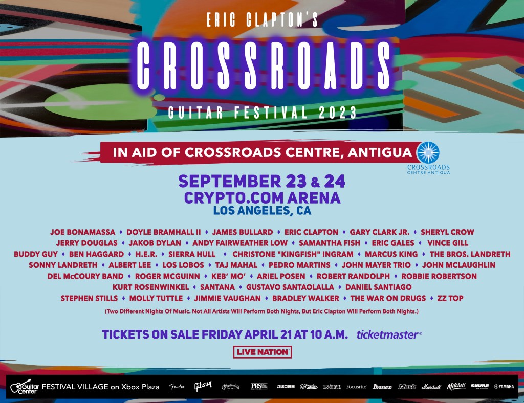 Eric Clapton announced today the 7th installment of the Crossroads Guitar Festival. The Festival, which has become legendary in its own right for hosting performances and impromptu collaborations from the world’s most renowned guitar players, will take place over two nights on September 23rd and 24th at the Crypto.com Arena in Los Angeles, CA. Clapton will gather the past, present and future of guitar music onto one stage for an unparalleled musical event featuring performances from the below list of notable guitarists. Tickets to the Festival will go on sale this Friday, April 21 at 10:00 a.m. local via Ticketmaster. Please note that each day will be sold as its own ticket and there will not be 2-day passes.