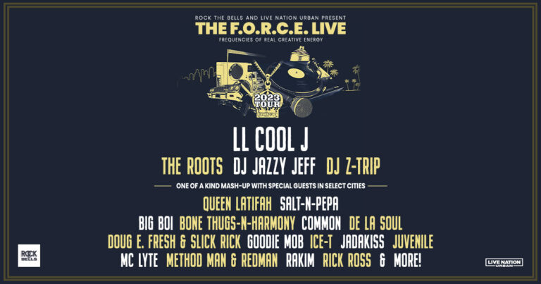 Live Nation Urban reveals details for a brand new once-in-a-lifetime touring experience and a celebration of Hip-Hop culture – Rock The Bells & Live Nation Urban Presents The F.O.R.C.E. (Frequencies of Real Creative Energy) Live headlined by Rock and Roll Hall of Fame® Inductee, Kennedy Center® Honoree, two time GRAMMY® Award winner, and Hip-Hop icon LL COOL J. The historic tour will mark LL COOL J’s first headline arena tour in 30 years. Living up to the acronym F.O.R.C.E. (Frequencies of Real Creative Energy), the lineup for this tour is personally curated by LL COOL J himself.