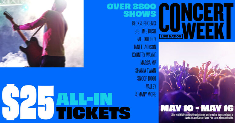 - Concert Week all-in tickets are available for select Live Nation events, while inventory last